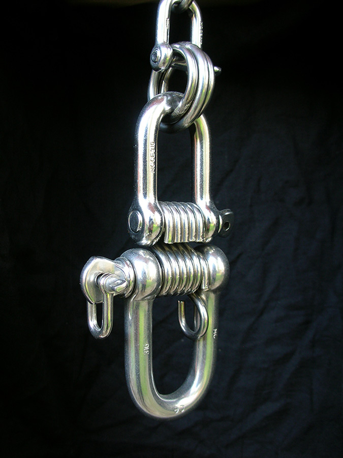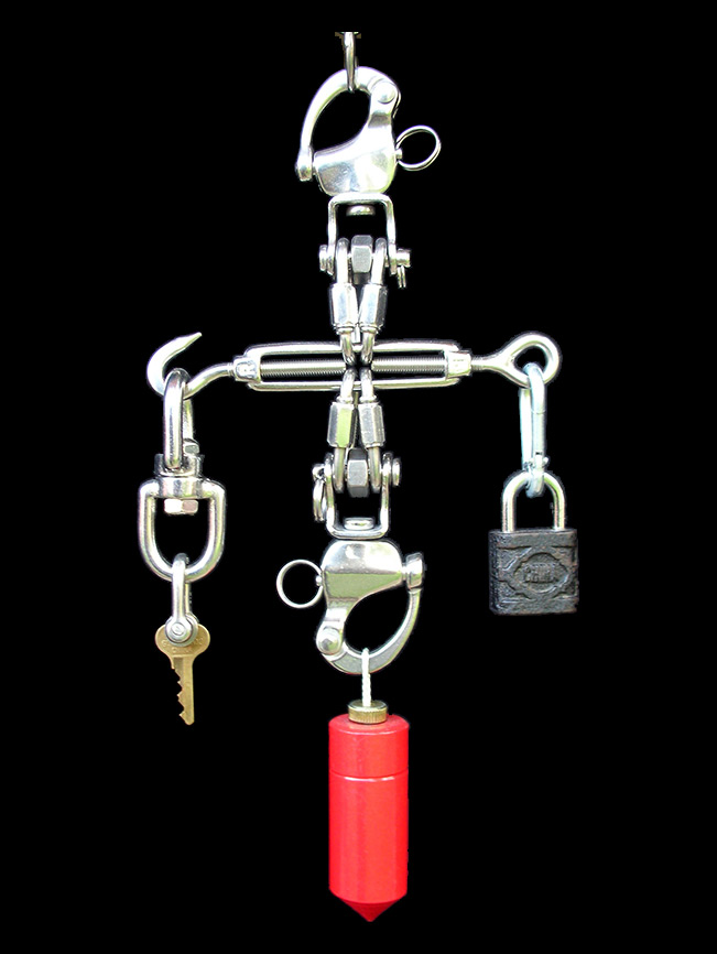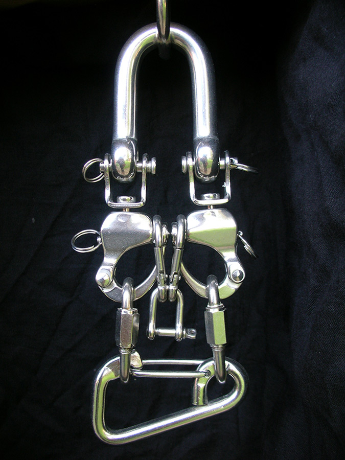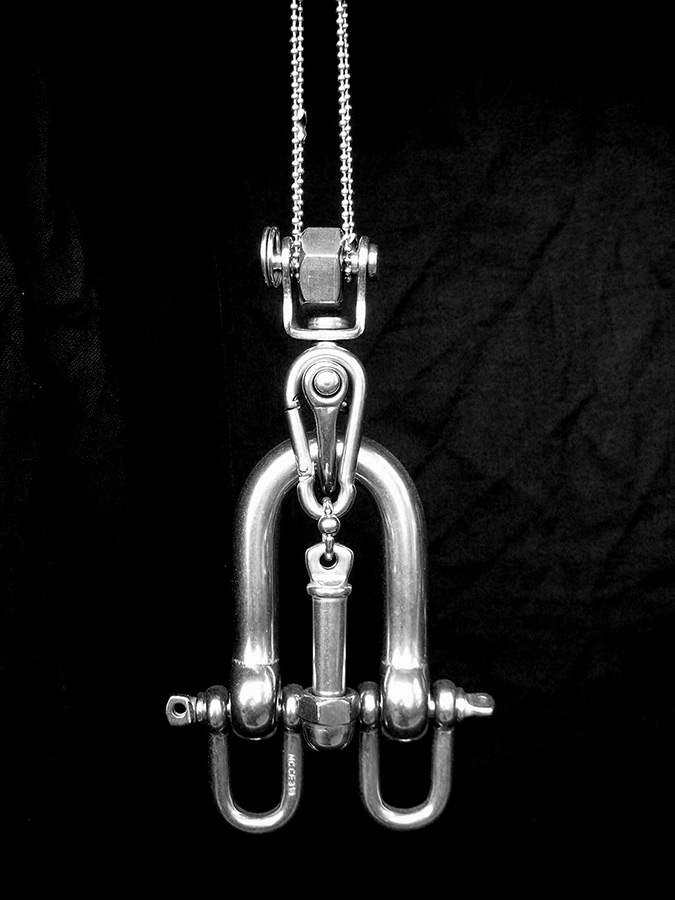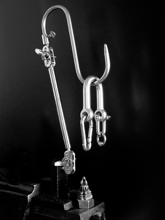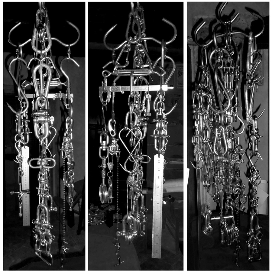 is Pain A series of sculptures assembled from off-the-shelf stainless steel parts. Some are self standing, some are mobiles hanging from the ceiling. Some are very small, other are huge and heavy. This work deals with sex, grace, trust, jewelry, ritual, passion, permanence, suspension, intensity, stainless steel, flesh, detail, healing, preciousness, belonging, anticipation, complicity, grayscale, weight, craft, wonder, light, gravity and love. A study for this work (two pieces) were exhibited at the collective show Subterranean Modern, curated by Giacomo Spazio and produced by The Don Gallery, in Milan (22/11 - 12/12/2012).