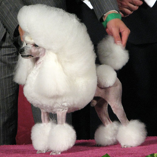 I cani sono assolutamente pazzeschi, e non hanno nulla di umano, pardon canino – salvo in rari casi. Sono mutanti, come certe persone che abitano nella mia Tv, ma senza chirurgia. Lavati e stirati, pettinati e impomatati, docilissimi – ai limiti dell’autismo: sono stato dentro circa due ore e non ho sentito MAI nemmeno un abbaio. Si prestano a questo circo apparentemente rassegnati alla follia dei loro padroni, in cambio di frequenti bocconcini (croccantini? MDMA? Tranquillanti? Non so dire) che il conduttore porta sempre in tasca. Li ho guardati bene negli occhi, povere bestie, e ho avuto paura. Alcuni sembravano piangere mentre altri, come l’Elvis coreano nella foto, avevano un’espressione di follia omicida – limitata solo dalle dimensioni topesche. Altro che Gozilla: quella bestiaccia alta sei metri è il mio peggiore incubo.